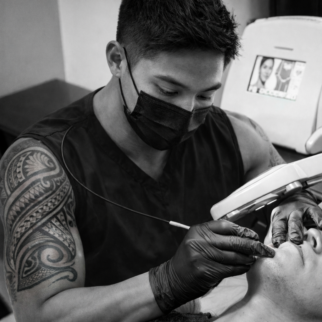 The machine’s intuitive touchscreen interface and ergonomic design allow our clinicians to tailor settings for each client’s individual hair type, thickness, body area, and skin response.